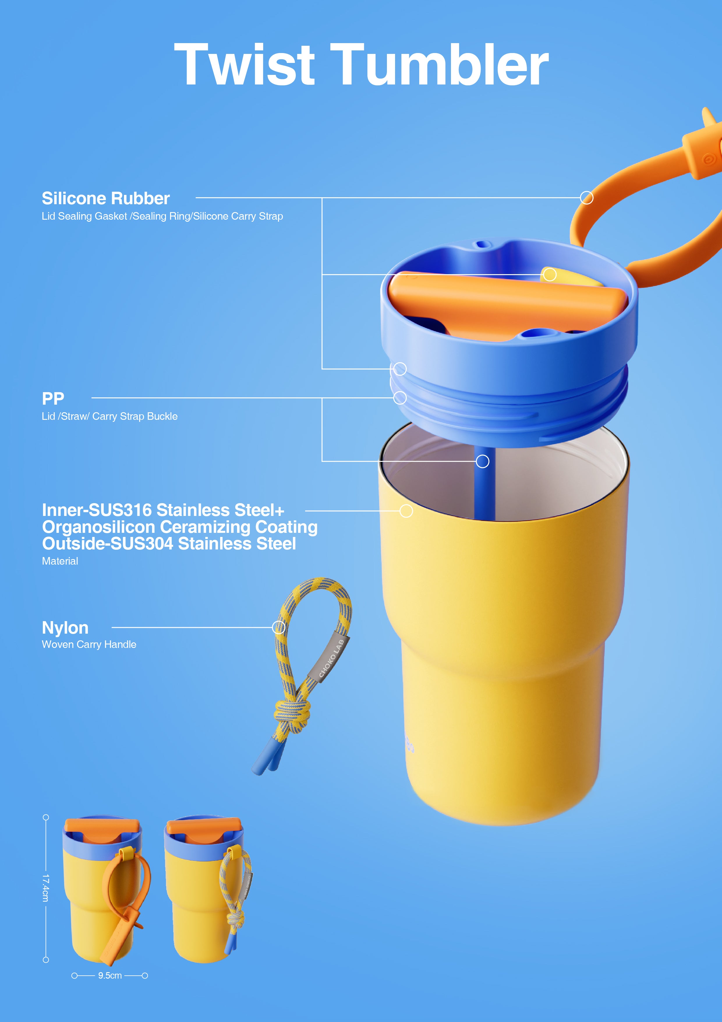 Food-grade ceramic liner water bottle, BPA free, has no metallic taste, is safe and healthy, and the ceramic liner is more suitable for coffee and juice.