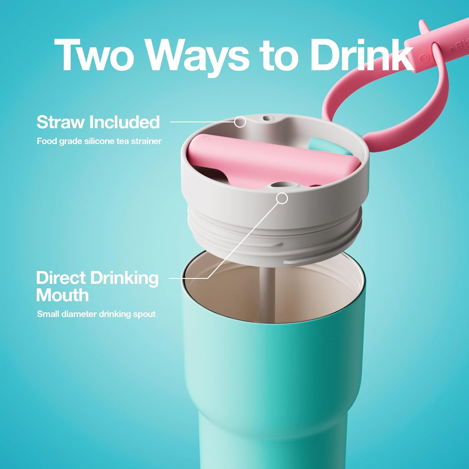 Open the lid 90° counterclockwise, and there will be a straw mouth and a direct drinking mouth. You can choose the way you like to drink water. We deliberately made the size of the direct drinking mouth smaller to prevent choking when drinking too fast during exercise.