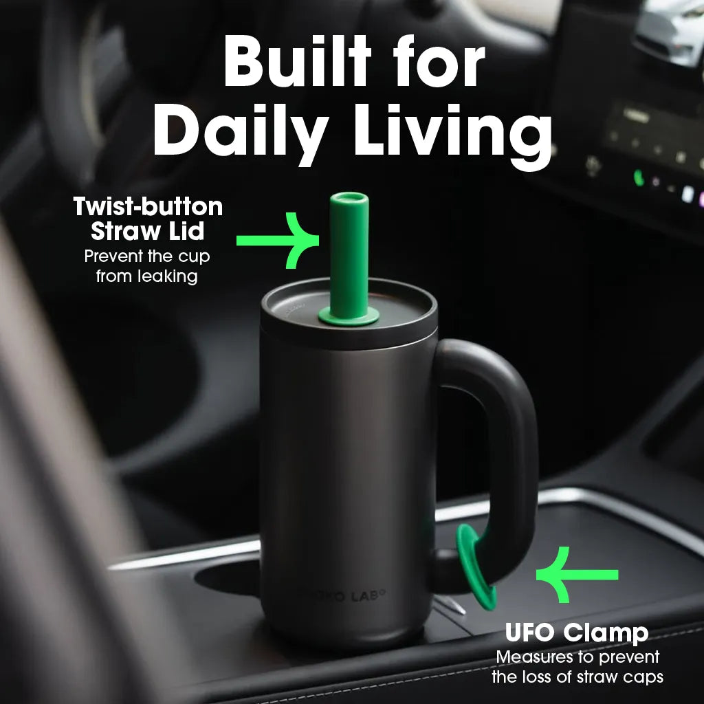 • Material: Outer & Inner: Titanium, Cap & Straw – ABS/PP, Bottom & UFO Clamp – Silicone Rubber