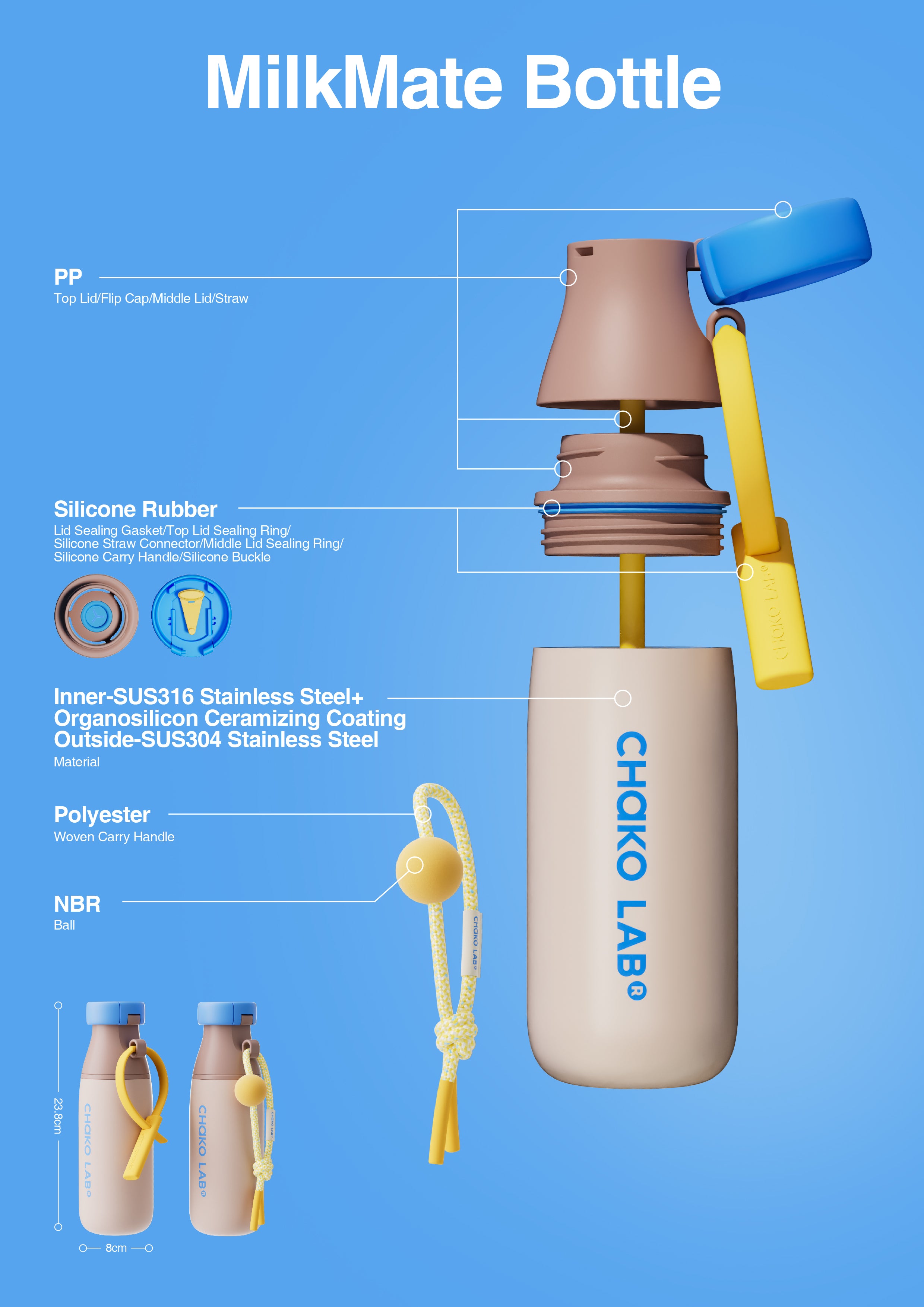 • Two handles are suitable for various travel modes: the silicone handle is more sporty, and the braided rope handle is cuter, and can be used as a decoration even when traveling and taking photos